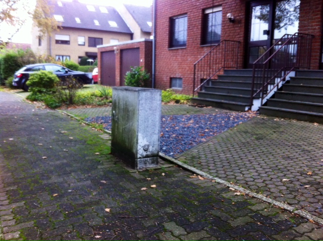 Er steht schon viele Jahre dort. Eher unbeachtet. Ein Strom-Verteilerkasten auf dem Gehweg. Direkt im Eingangsbereich eines Wohnhauses. Irgendetwas ist hier wohl schief gelaufen. Man hat sich anscheinend daran gewöhnt. Aber Stadtteilplanung und Gestaltung sieht anders aus.