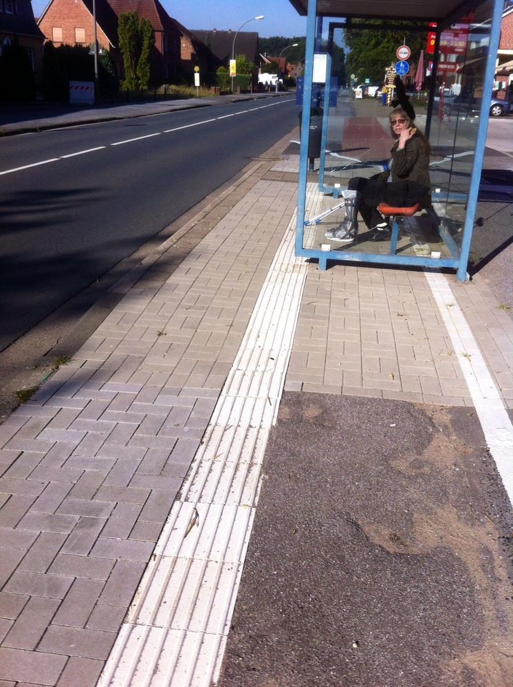 Die fehlerhafte Konstruktion ist bekannt und soll geändert werden. Es gab dazu bereits einen Ortstermin mit dem Kreis Recklinghausen als Straßenbaulastträger. Derzeit laufen Gespräche mit einem privaten Anlieger, dessen Grundstück in Anspruch genommen werden muss, um das Wartehäuschen ein Stück vom Bordstein weg nach hinten zu versetzen. Das Häuschen stand ursprünglich auf der gegenüberliegenden Straßenseite (für den Bus Fahrrichtung Busbahnhof Dorsten). Hier musste es abgebaut werden, weil ein hier ebenfalls in Anspruch genommenes Grundstück nicht mehr genutzt werden konnte. Um den Wartestand dennoch zu erhalten, sollte er auf die gegenüberliegende Seite an den heutigen Standort verlegt werden. In der ursprünglichen Planung für den Umbau der Bushaltestelle war der taktile Streifen noch nicht vorgesehen. Diesen Blindenleitstreifen hatte der Kreis Recklinghausen auf Bitten der Stadt Dorsten kurzfristig für einen sehbehinderten Rhader Bürger angelegt.