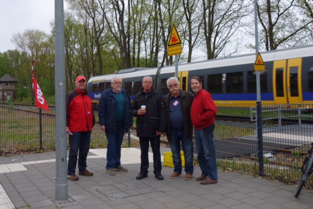 „Bahnhof Rhade: erneute Kaffee-Aktion der Rhader SPD. Frühaktionen gehören im gesamten Wahlkreis zum engagierten Wahlkampf der SPD-Ortsvereine. Die SPD Dorsten-Rhade beweist nun bereits zum wiederholten Male, dass keine Uhrzeit zu früh und kein Wetter zu schlecht ist. Am Bahnhof Rhade wird bis zur Einfahrt des Zuges mit Infomaterial um jede Stimme geworben und einen Kaffee gab es auch noch für die Pendler. Vielen Dank an Vorsitzenden Christoph Kopp, Hans-Willi Niemeyer, Dieter Neumann und Jürgen Heinisch.“