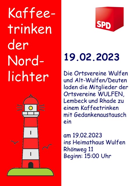 Als 1975 NRW, und somit auch Dorsten neu geordnet wurde, verloren u. a. Rhade, Lembeck und Wulfen ihre Selbständigkeit. Die Eingemeindung nach Dorsten war ein schwieriger Akt. Auch für die SPD. Um gegen die Mitgliederübermacht in Holsterhausen, Hervest und Altstadt zu bestehen, bildeten die nördlichen SPD-Ortsvereine eine lose Gruppe, in der Presse schnell NORDLICHTER genannt. Nun wird intensiv überlegt, aus der losen Zusammenarbeit, eine dauerhafte Organisationseinheit zu schmieden. Ein gemeinsames Kaffeetrinken am gestrigen Sonntag wurde zum gemeinsamen Meinungsaustausch genutzt. Über das Ergebnis in Kürze mehr.