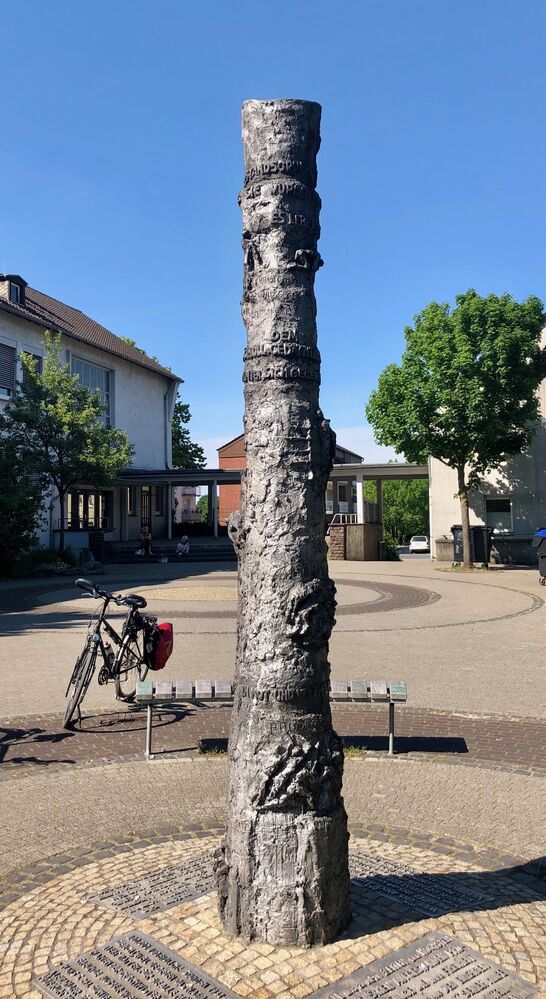 Uns zur Mahnung - die Säule auf dem Schulhof der Geschwister Scholl Schule