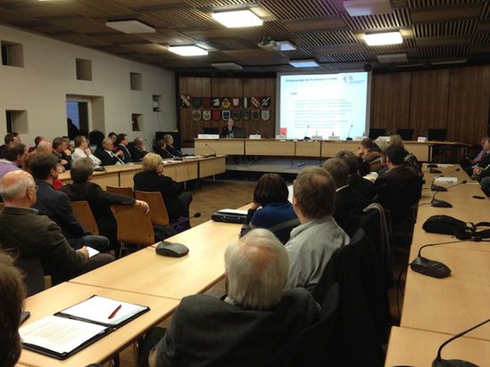 Vertreter aus Bund und Land saßen im großen Sitzungssaal ca. 120 Personen gegenüber, die von Bürgermeister Lütkenhorst begrüßt wurden.