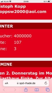 Vor 50 Jahren wurden alle Rhader Haushalte mit einer neuen Zeitung überrascht. Die örtlichen Sozialdemokraten begannen die kommunalpolitische Landschaft mit neuen Ideen und einer Daueroffensive an Informationen aufzumischen. Der Erfolg war in steigender Akzeptanz und kontinuierlich besseren Wahlergebnissen abzulesen. Rund 120 Ausgaben der „SPD-Nachrichten für Rhade“ wurden im Laufe des genannten Zeitraums von fleißigen Mitgliedern flächendeckend verteilt. Eine Leistung, mit der keine Partei im weiten Umkreis auch nur annähernd konkurrieren konnte. Das Internet versprach weitere Möglichkeiten, um für sozialdemokratisches Denken zu werben. 2008/2009 gilt als Geburtsjahr von www.spd-rhade.de. Seit 15 Jahren wird diese Internetseite täglich (!) aktualisiert. Ob Interessantes aus der eigenen Partei, Bewertungen über die Konkurrenz, Lesetipps, Theaterkritiken, Blicke über den Tellerrand, Gedichte, Stadtentwickklungshinweise, Satire und Kommentare - die Rhader Internetseite schließt eine Info-Lücke, die die letzte Lokalzeitung unübersehbar öffnet. Sie erfreut sich wachsender Zustimmung und Beliebtheit. Nun ist es soweit. Seit der Scharfschaltung der Internetseite, von Jürgen Heinisch technisch eingerichtet, konnten 4 Millionen (!) Klicks gezählt werden. Eine fast unglaubliche Erfolgsgeschichte. Die Rhader SPD nimmt dieses seltene Jubiläum zum Anlass, um sich bei allen Lesern herzlich für das Interesse zu bedanken und die Bitte auszusprechen: „Empfehlen Sie uns bitte weiter“!