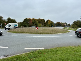 Der Kreisverkehr an der A31 war ein Blickfang. Bepflanzt und gepflegt von einem nicht mehr existenten Rhader Gartenbaubetrieb, war er ein ansehnliches Eingangstor nach Rhade. So wie der freundliche Eingangsbereich zu einem Haus oder einer Wohnung. Also ein WILLKOMMEN-Symbol. Dann mussten gigantische Bauteile für eine Windkraftanlage in unserer Region transportiert werden. Eine unüberwindbare Engstelle war der genannte Kreisverkehr. Kurzerhand wurde das Grün entfernt, der künstliche Hügel „platt“ gemacht, Stahlplatten verlegt, um den Schwertransportern das Überqueren zu ermöglichen. Die Windkraftanlage ist seit Monaten vor Ort aufgebaut und liefert bereits saubere Energie. Sicherlich war vertraglich festgeschrieben, dass die Kreisverkehrsinsel wieder in den vorherigen Zustand versetzt werden muss. Auch die für den Schwertransport abgesägten Alleebäume an der Lembecker Straße müssen nachgepflanzt werden. Nun stellen wir fest, dass sich seit Monaten nichts bewegt. Eine Erinnerung reichen wir an unseren Dorfmanager Lazlo Taube weiter. Natürlich berichten wir anschließend über neue Erkenntnisse.