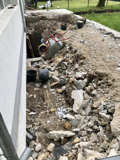 Am 24. April haben wir durch einen Hinweis die Öffentlichkeit und die Stadt Dorsten darüber informiert, dass an einer offen zugänglichen Baustelle in Rhade, direkt neben dem städtischen Spielplatz, asbesthaltiger Bauschutt in entsprechend gekennzeichneten Sackverpackungen tagelang gelagert wurde. Zulässig?, so unsere Frage an das Rathaus. Eine Antwort haben wir bisher nicht erhalten, aber die Big-Bags wurden inzwischen abgefahren. Nehmen wir einmal an, dass unser Hinweis Auslöser war. Bleibt die Frage, was geschieht dort eigentlich seit Wochen? Unsere Recherche ergab Erstaunliches: Das von Grund auf sanierte Gebäude hat den Besitzer gewechselt. Die Sanierungsarbeiten waren wohl mangelhaft und nur „auf Optik“ ausgerichtet. Der dabei angefallene Bauschutt wurde nicht ordnungsgemäß entsorgt, sondern in den Kellergewölben abgekippt, sowie im Erdreich verbuddelt. Zur Vertuschung wurden Wände vor den Schutt gemauert. Das Ausmaß der „Instandsetzung“ ist gewaltig. Seit Wochen werden Abfallsteine und sonstiger belasteter Bauschutt „ausgegraben“ und teils von Hand in Big-Bags und Container zur Abfuhr bereitgestellt. Die Sanierung soll in Kürze abgeschlossen sein, um dann mit der Vermietung oder dem Verkauf der Wohnungen zu beginnen. Sollte unsere Recherche richtig sein, könnte nach vielen Jahren aus dem Problemhaus doch noch ein ganz normales Wohnhaus entstehen. Dem Quartier würde es gut tun.
