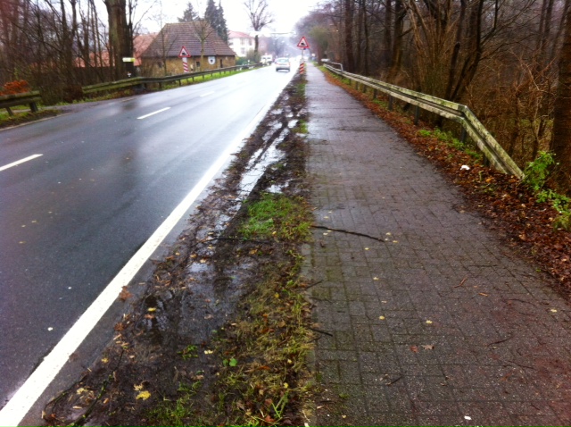 Die Reifenspuren sind eindeutig. Der Pseudogrünstreifen, der die Fahrbahn der Lembecker Straße zwischen Stuvenberg und Bahnlinie vom parallel verlaufenden Fuß- und Radweg trennt, wird ständig überfahren. Damit ist eine latente Gefahr für die schwächeren Verkehrsteilnehmer verbunden. Grund für die Rhader SPD darauf hinzuweisen und eine sichere Abgrenzung (eventuell Leitplanken) zu fordern. Da es sich um eine Kreisstraße handelt, antwortet jetzt die Kreisverwaltung RE. (Kurzfassung):