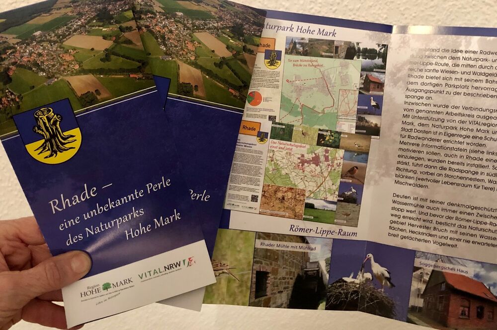 Es ist eine bunte Mischung von ca. 10 Rhader Bürgern, noch ist weibliche Unterstützung Mangelware, die sich in unregelmäßigen Abständen trifft, um gemeinsam dem „schlummernden“ Rhader Rahmenplan Leben einzuhauchen. Ihre Erkenntnisse haben sie auf den Treffen des örtlichen Bürgerforums vorgestellt und grünes Licht für die Umsetzung erhalten. Nun liegt ein interessantes Informationsblatt vor, neudeutsch FLYER, das Rhade in ein besonderes Licht rückt. „Rhade - eine unbekannte Perle des Naturparks“, heißt es unübersehbar auf der Titelseite. Es ist eine liebevoll gestaltete Werbebroschüre der genannten Rhader, ehrenamtlich und nicht Partei gebunden agierend, um den sanften Tourismus innerhalb des riesigen Naturparks Hohe Mark auch in Richtung Rhade zu leiten. Das Infoblatt wird in diesen Tagen an vielen Stellen unseres Stadtteils und in der Nachbarschaft ausgelegt. Rhade hat was, hieß es bereits mehrfach an dieser Stelle. Nun wird mit diesem bestechenden Argument professionell geworben. Damit ist auch der Beweis angetreten, dass es sich lohnt, sich für seinen Lebensmittelpunkt einzusetzen. Gerne kann der Arbeitskreis um weitere Interessenten erweitert werden, so Burkhard Averkamp, Sprecher, am Abschluss jedes Treffens. Kontakt: averkamp@live.de