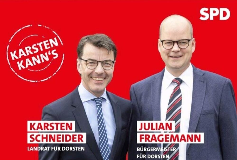 Während Julian Fragemann, ein in der Lippestadt allseits bekannter und geschätzter SPD-Lokalpolitiker das Bürgermeisteramt anstrebt, kandidierst Du, Karsten Schneider, ebenfalls als engagierter Sozialdemokrat, für das Amt des Landrats im großen Kreis Recklinghausen. Du hast nun die Möglichkeit, mit der Beantwortung der drei folgender Fragen, aufzuzeigen, warum auch Dorsten davon profitieren könnte, zöge wieder ein Sozialdemokrat als Chef ins Kreishaus ein.